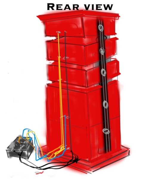 Of the six modules on the exoskeleton, only four of them are used. Two of the modules are extra, giving the customer the ability to switch them in or out of the overall system, at will, by relocation of rear crossover cables.